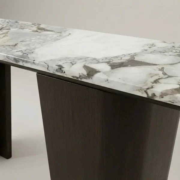 The Dalton Walnut Marble Console Table offers a truly exquisite blend of modern elegance and robust luxury. Indeed, this sophisticated piece dramatically enhances a wide range of contemporary interiors. Its expansive top, meanwhile, is crafted from genuine marble, boasting a pristine finish. This beautifully complements its sturdy steel base with a distinctive walnut + white + grey color scheme. Consequently, this table truly acts as a magnificent statement piece. Moreover, it seamlessly merges refined design with exceptional durability and captivating aesthetics.