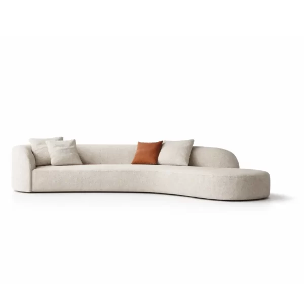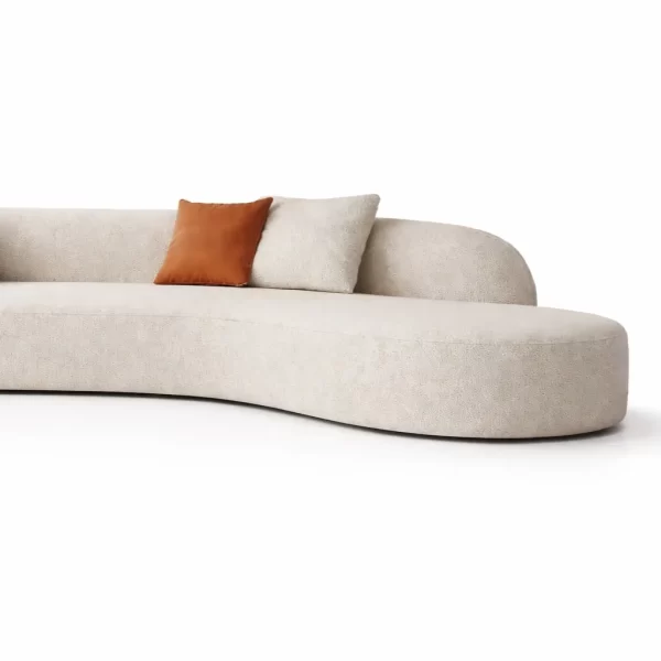 The Alona Modern Sofa features a sleek, modern design with a harmonious curved shape that flows gracefully throughout the piece. This sofa not only provides functional seating but also serves as a sophisticated decorative element, enhancing the overall appeal of your space.