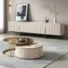 - Luxurious Sintered Stone Top: Primarily, it showcases a distinctive modern gold coffee table design, with one table featuring an elegant light beige sintered stone surface. This, consequently, perfectly complements contemporary and glam aesthetics.
