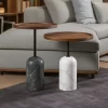 Initially, this impressive modern walnut side table presents a compact presence. It measures Dia 40 cm x H50 cm. This ensures a prominent yet space-efficient addition to your home. Furthermore, the durable wood top guarantees lasting beauty and a timeless appeal. Crucially, the robust marble base provides long-lasting stability and a luxurious touch. Thus, this round marble top table is perfect for holding drinks, books, or decorative items. Therefore, the Talon is a standout wood marble accent table. Ultimately, it adds a touch of captivating style and functional elegance to any setting.